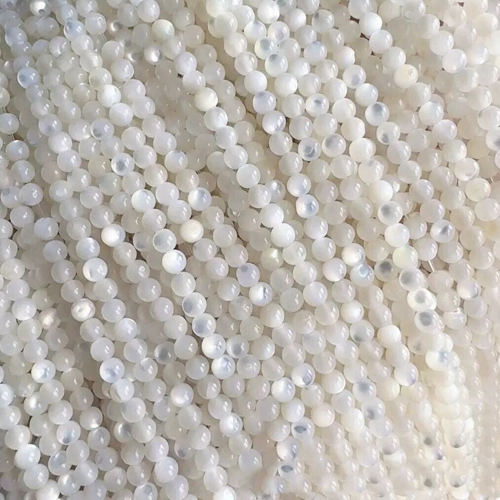 柔らかなミルキーホワイトが魅力のマザーオブパール(白蝶貝)丸玉ビーズです。