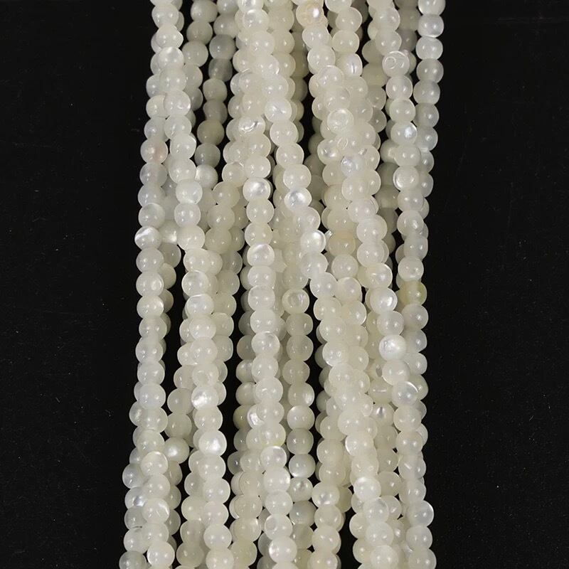 マザーオブパール(白蝶貝)丸玉ビーズ3mm ミルキーホワイト/ナチュラル光沢 【1連 約37〜38cm】