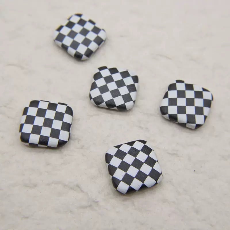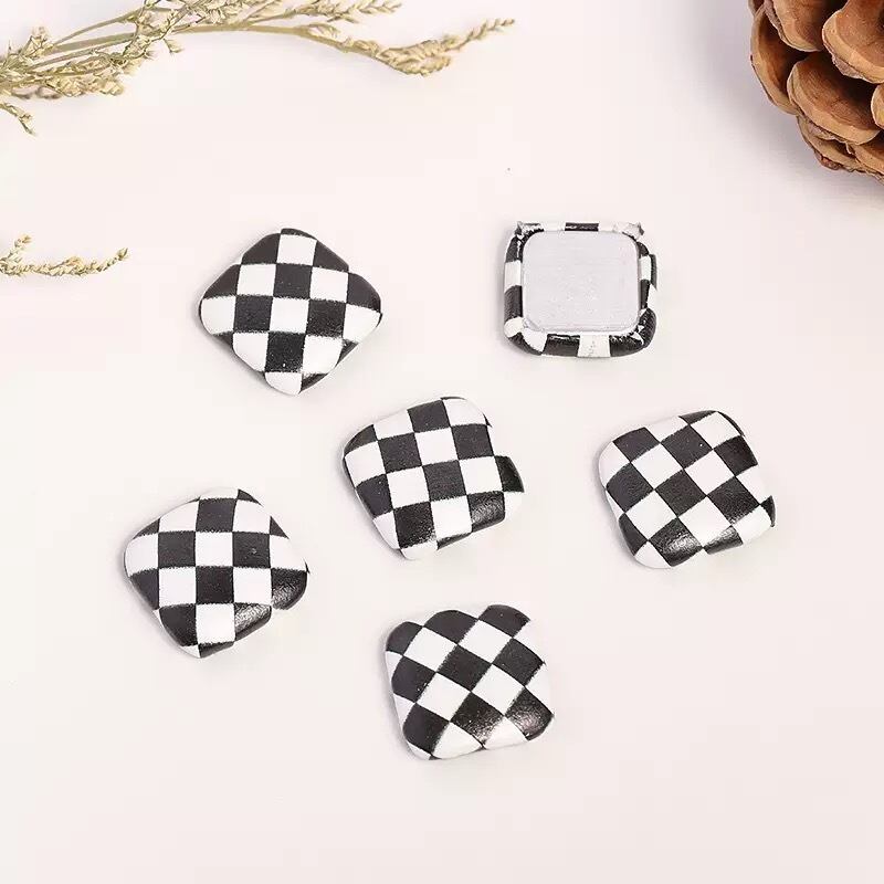 ブラック×ホワイトのチェック柄が目を引く、レザー調スクエアパーツです。