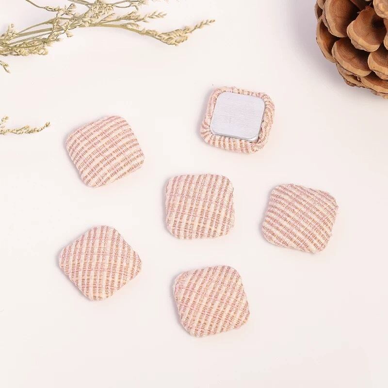布で包まれた、スクエア型のハンドメイドパーツです。