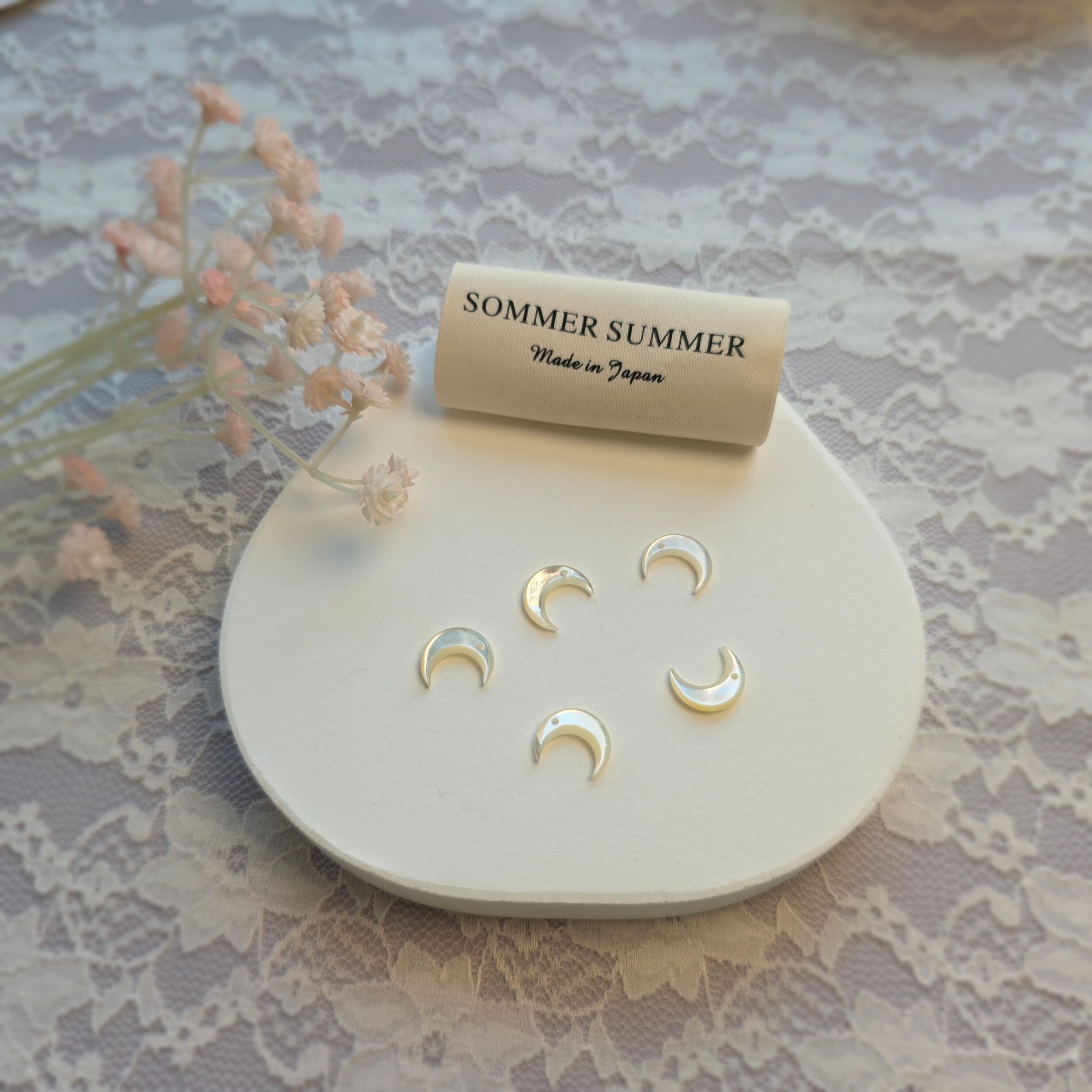 やさしい光沢が美しい、白蝶貝(ホワイトシェル)の月モチーフパーツです。