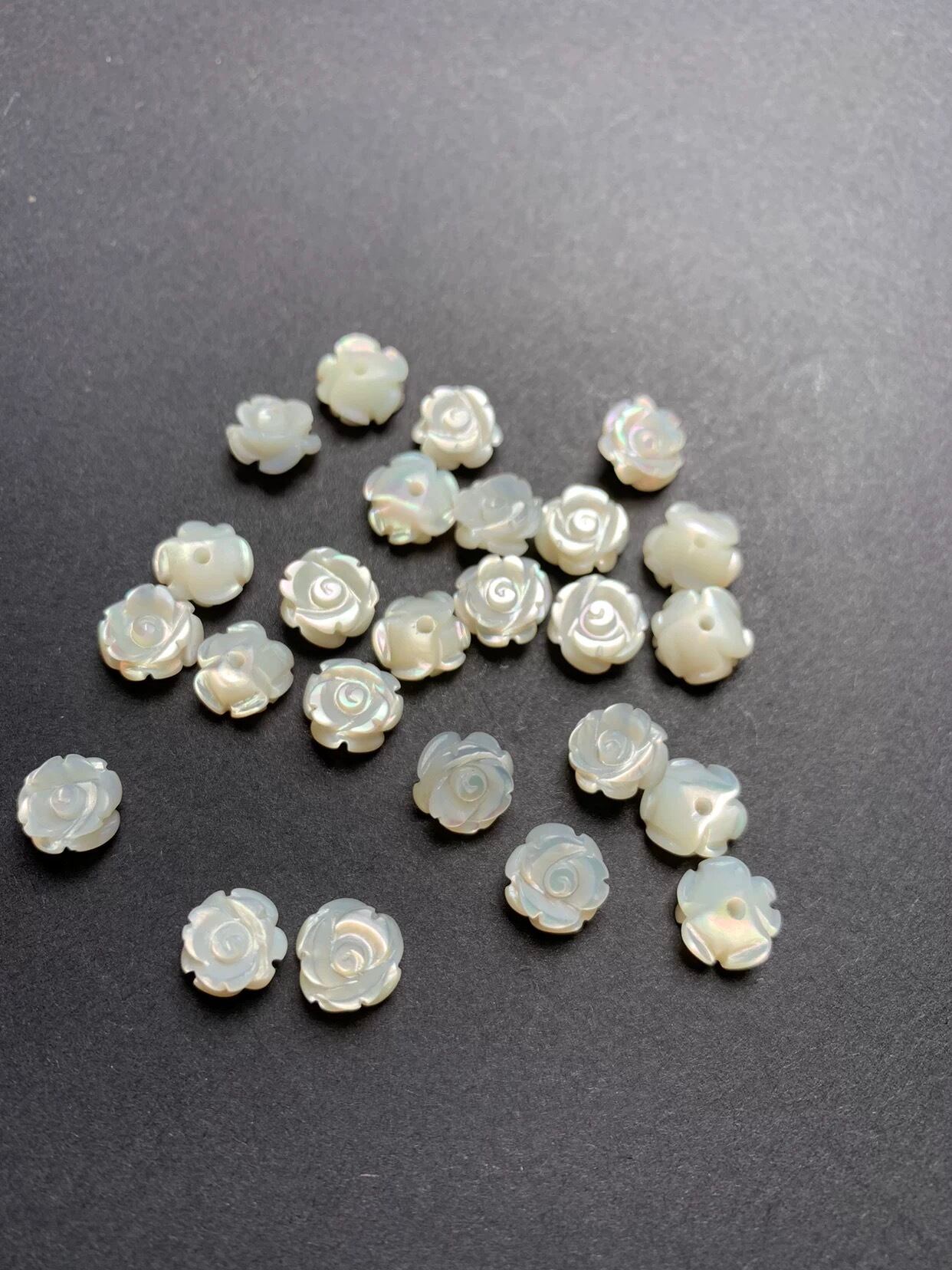 PD2マザーオブパールバラモチーフ/白蝶貝ローズパーツ 約12mm/背孔タイプ/ハンドメイド資材/パーツ 12mm/背穴/アクセサリーパーツ