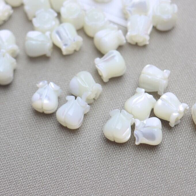 PD3マザーオブパールフラワーパーツ/白蝶貝小花ビーズ 約8×10mm/ハンドメイド資材/パーツ /穴あり/アクセサリーパーツ