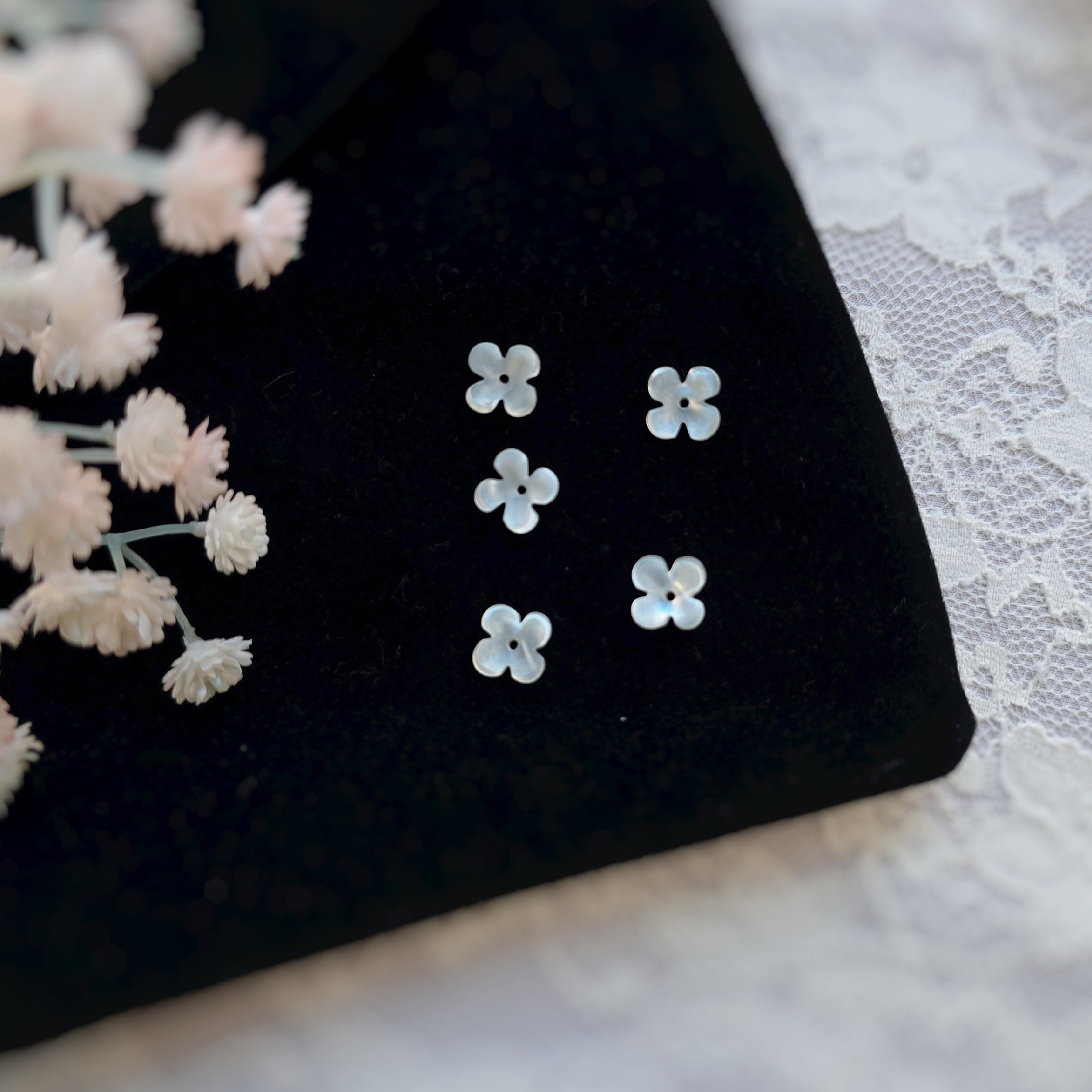 PD7マザーオブパールフラワーパーツ/白蝶貝花ビーズ 約8mm/ハンドメイド資材/パーツ /穴あり/アクセサリーパーツ