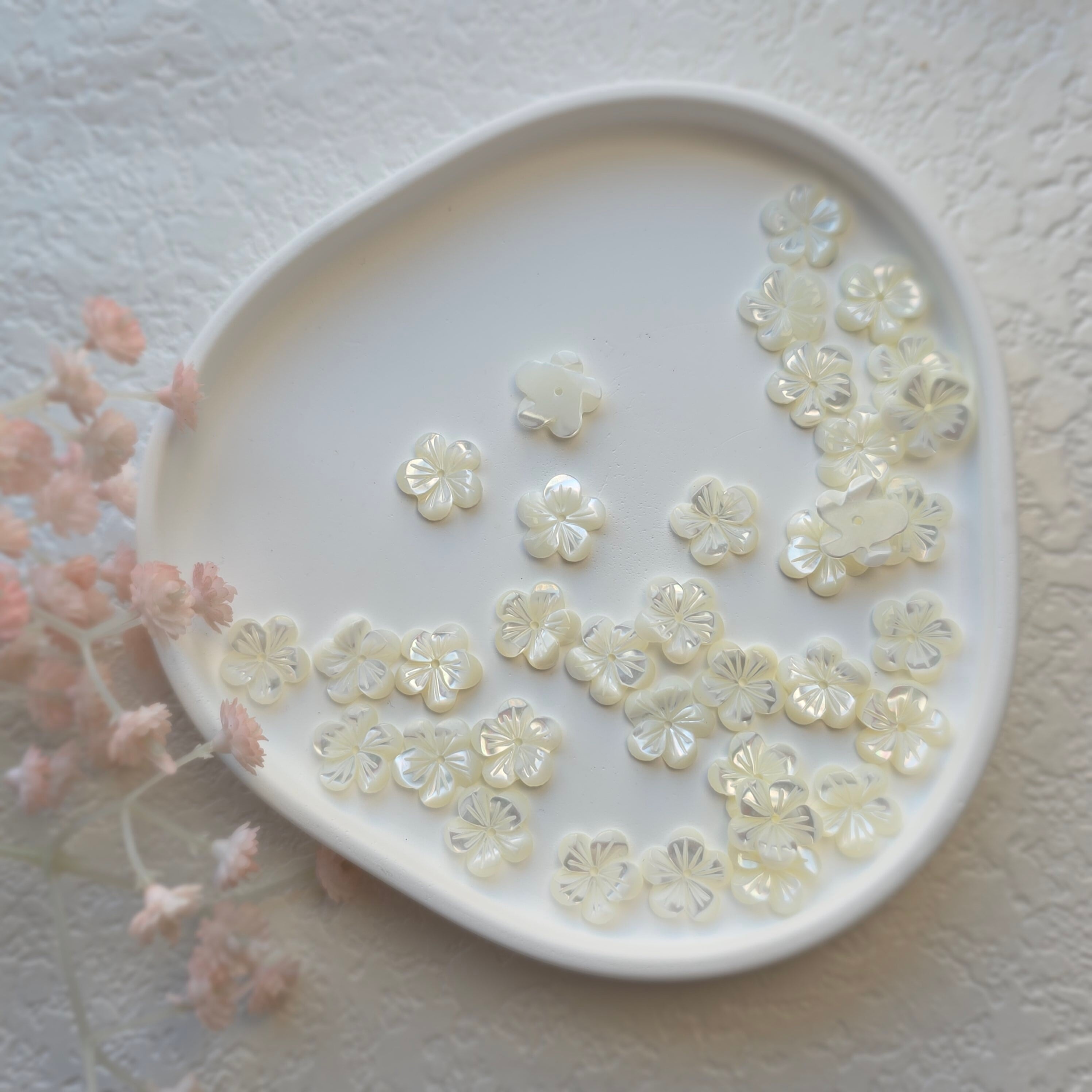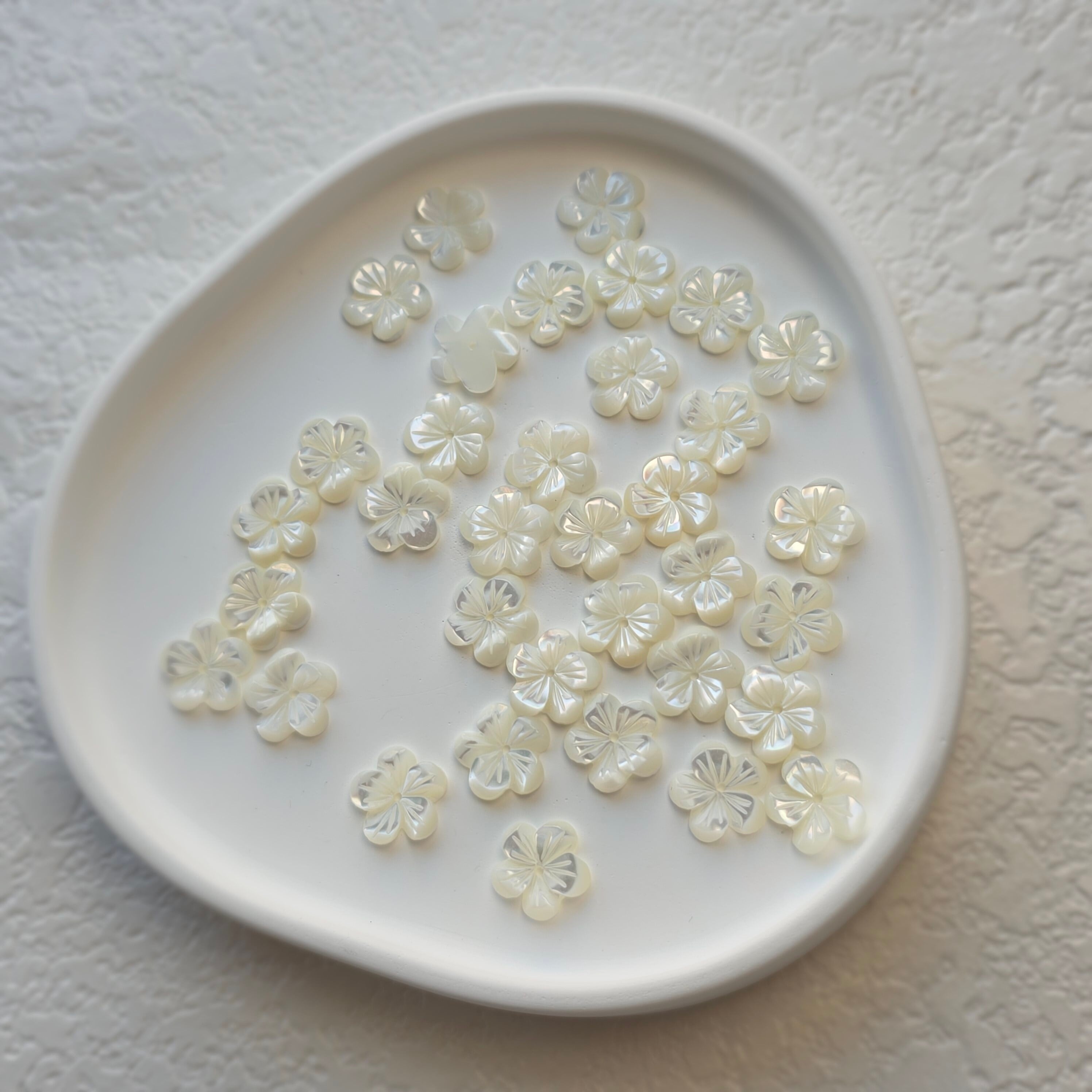 520マザーオブパールフラワーパーツ/白蝶貝花ビーズ 約12mm/ 桜の花本真珠母貝ビーズ天然石パワーストーンハンドメイド資材/パーツ /穴あり