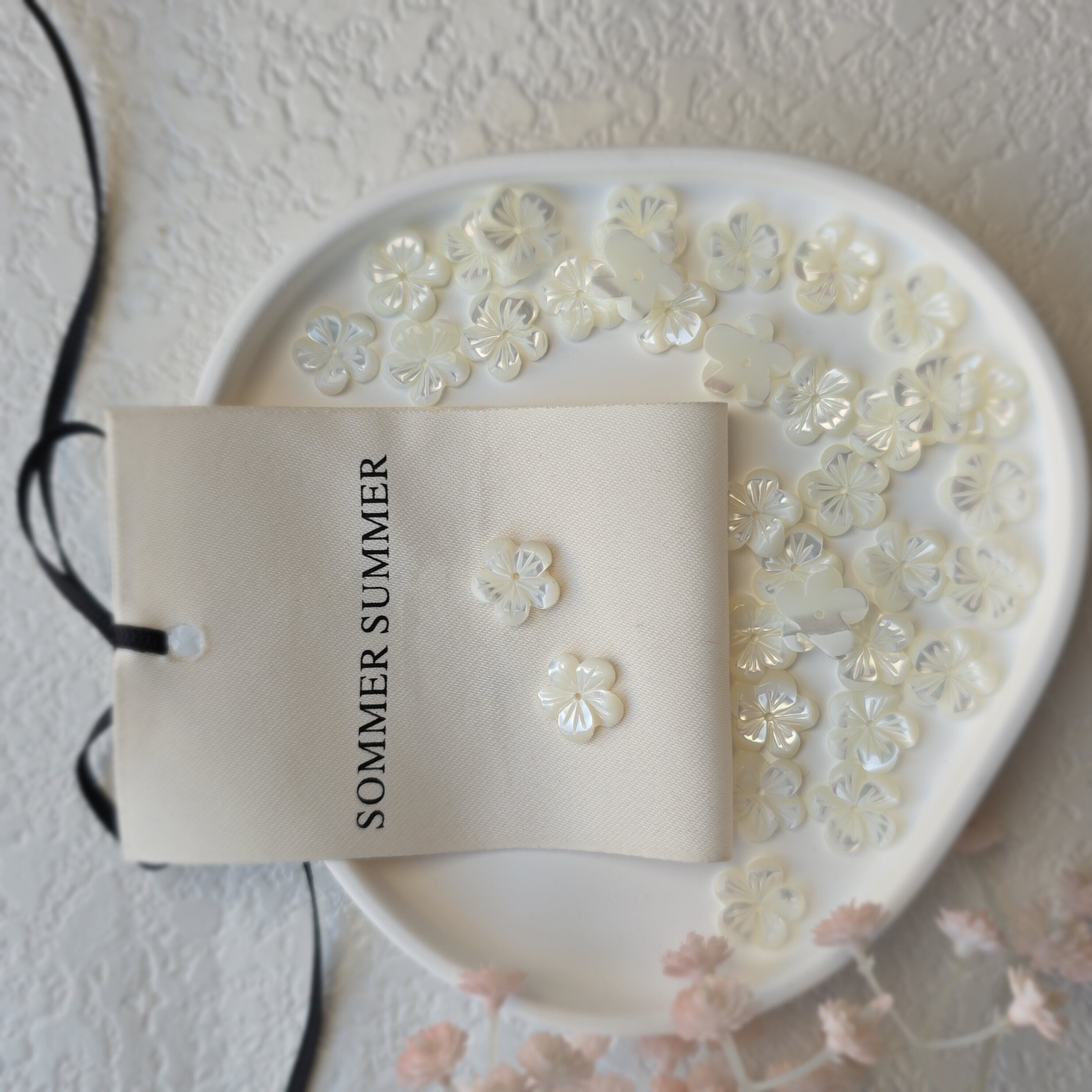 やさしい光沢を放つ天然の白蝶貝を、桜の花びらのかたちに彫刻した繊細なパーツです。