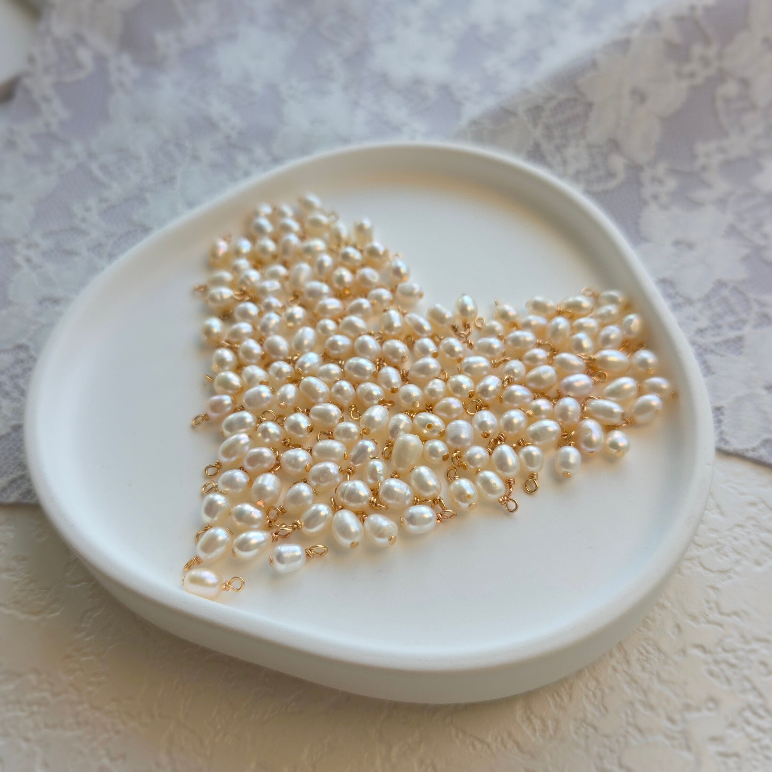 P260淡水パール 約4-5mm/ハンドメイド ワイヤー巻き淡水パール/10粒セット/天然真珠/ハンドメイド資材