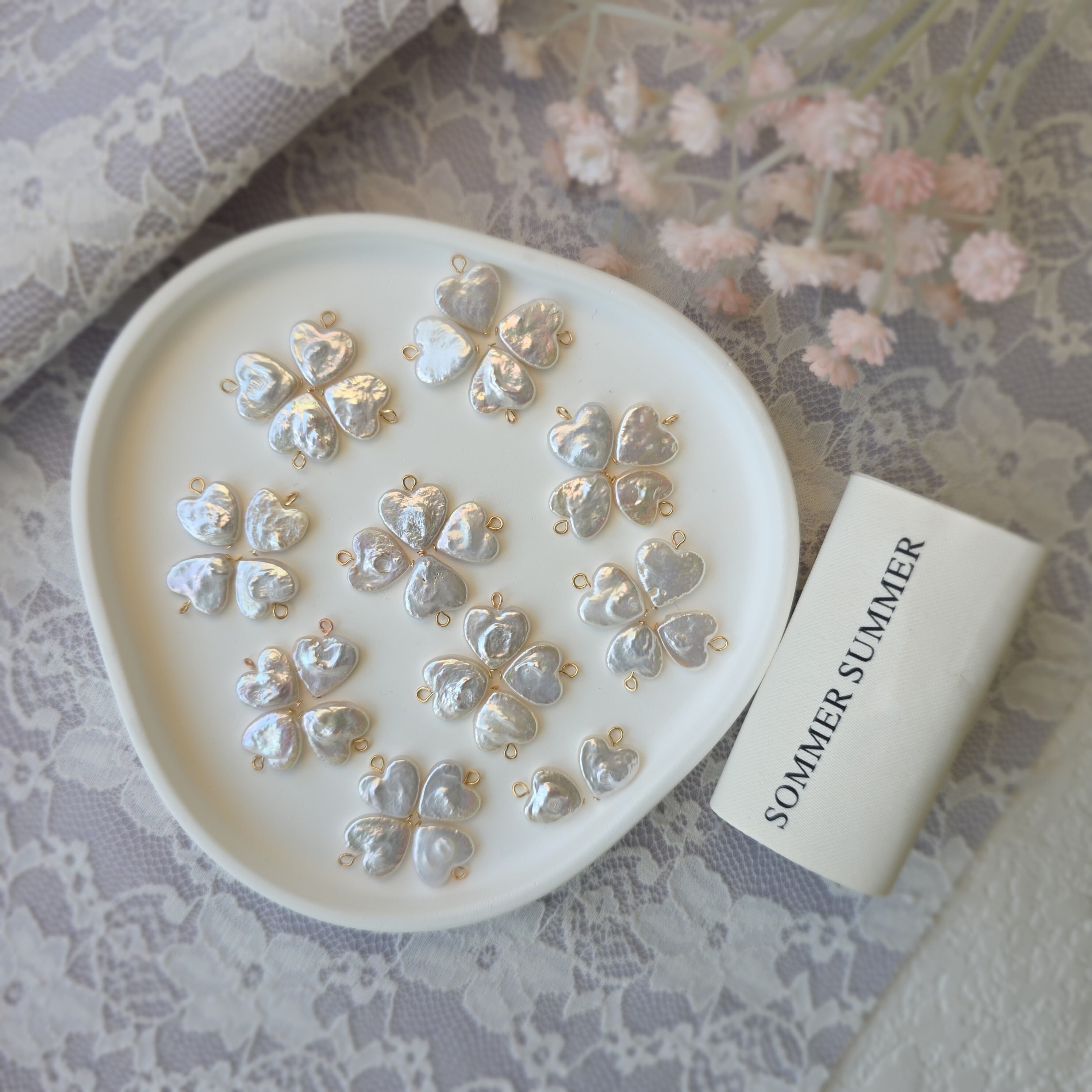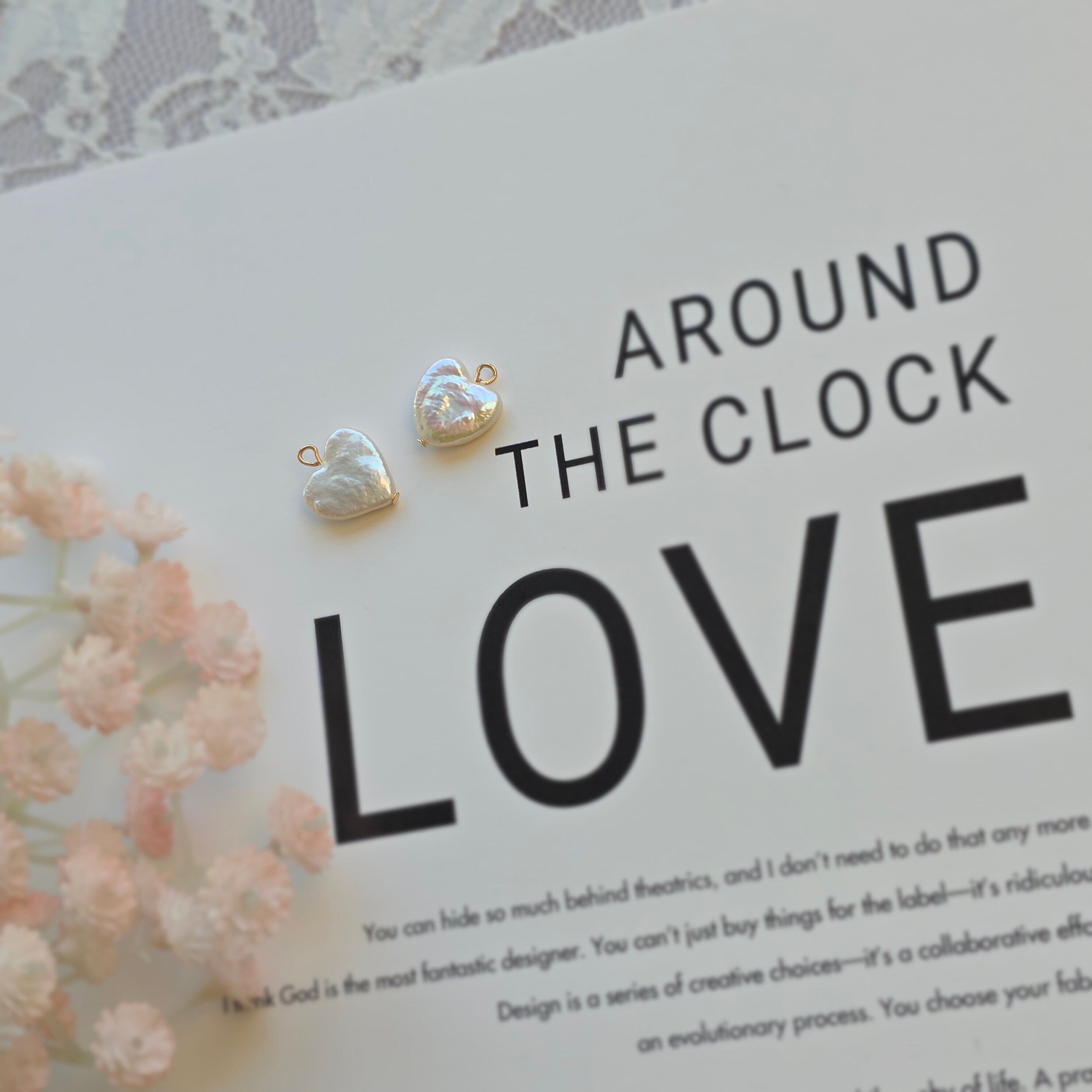 自然な形が魅力の淡水パールを、ひとつひとつワイヤーで丁寧に巻いたハート型チャームです。