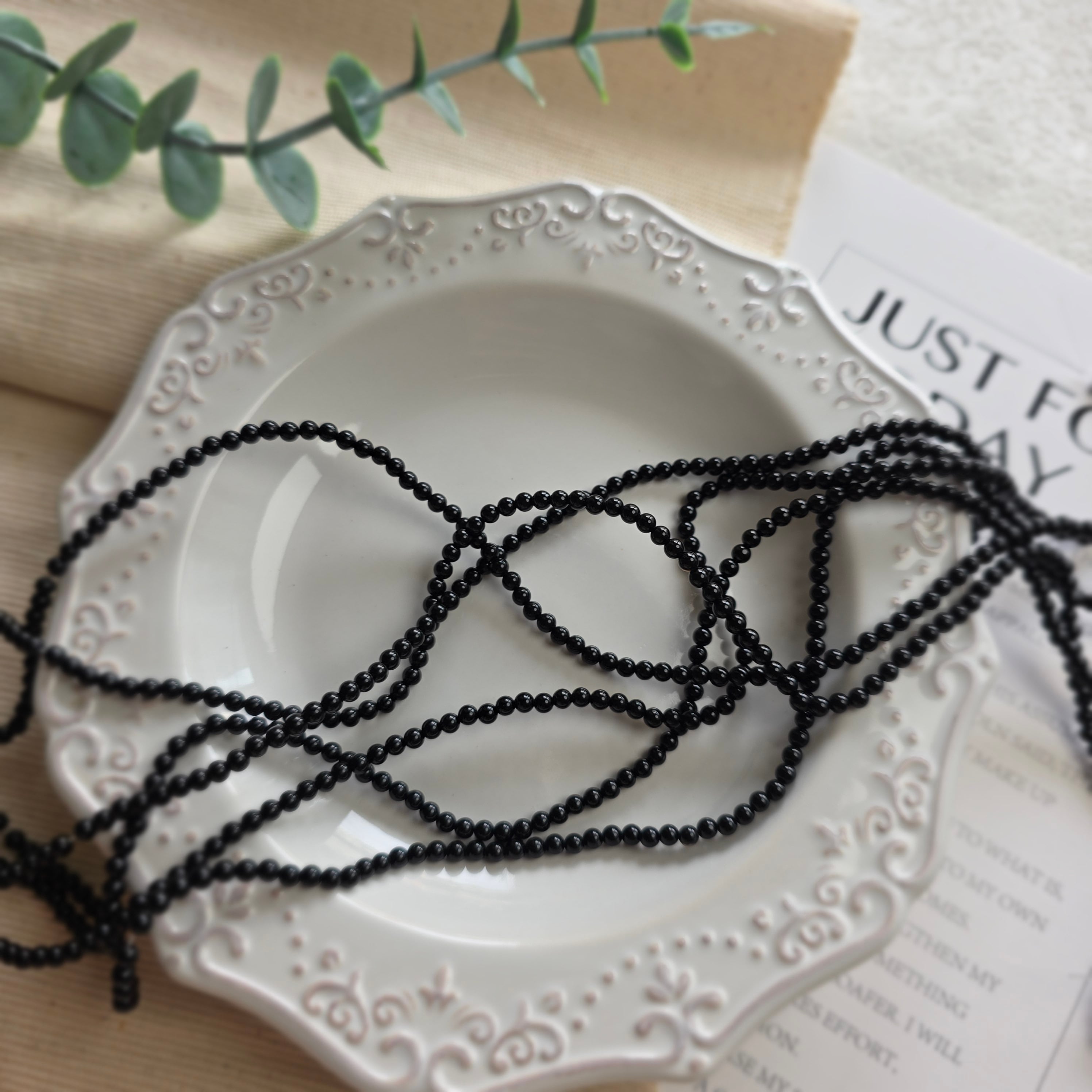 P529ブラックオニキス3mmビーズ連38cm|天然石ビーズ|黒ビーズ|ラウンドビーズ連|アクセサリー素材|ハンドメイド素材